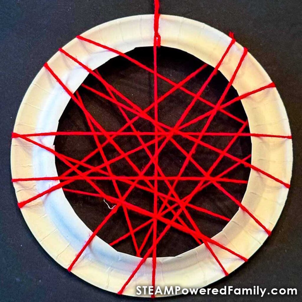 Talk to the kids about how webs are made, look at pictures or videos of spider webs to get them thinking about their own designs.